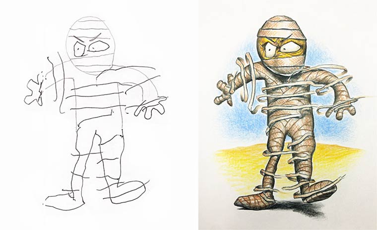 Quand un papa créatif s’amuse à terminer et à colorier les dessins de ses enfants | Ufunk.net.