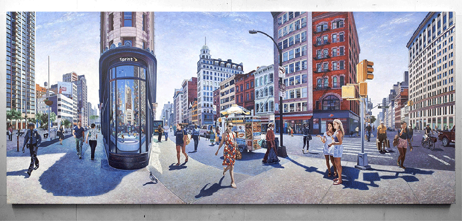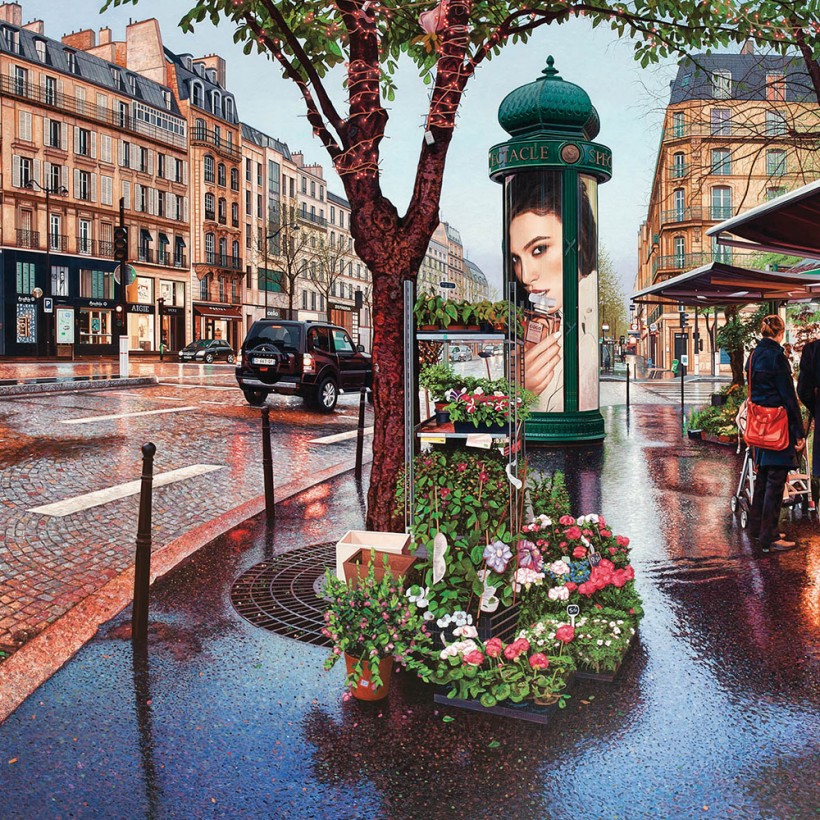 Des peintures de paysages urbains hyper-détaillées.