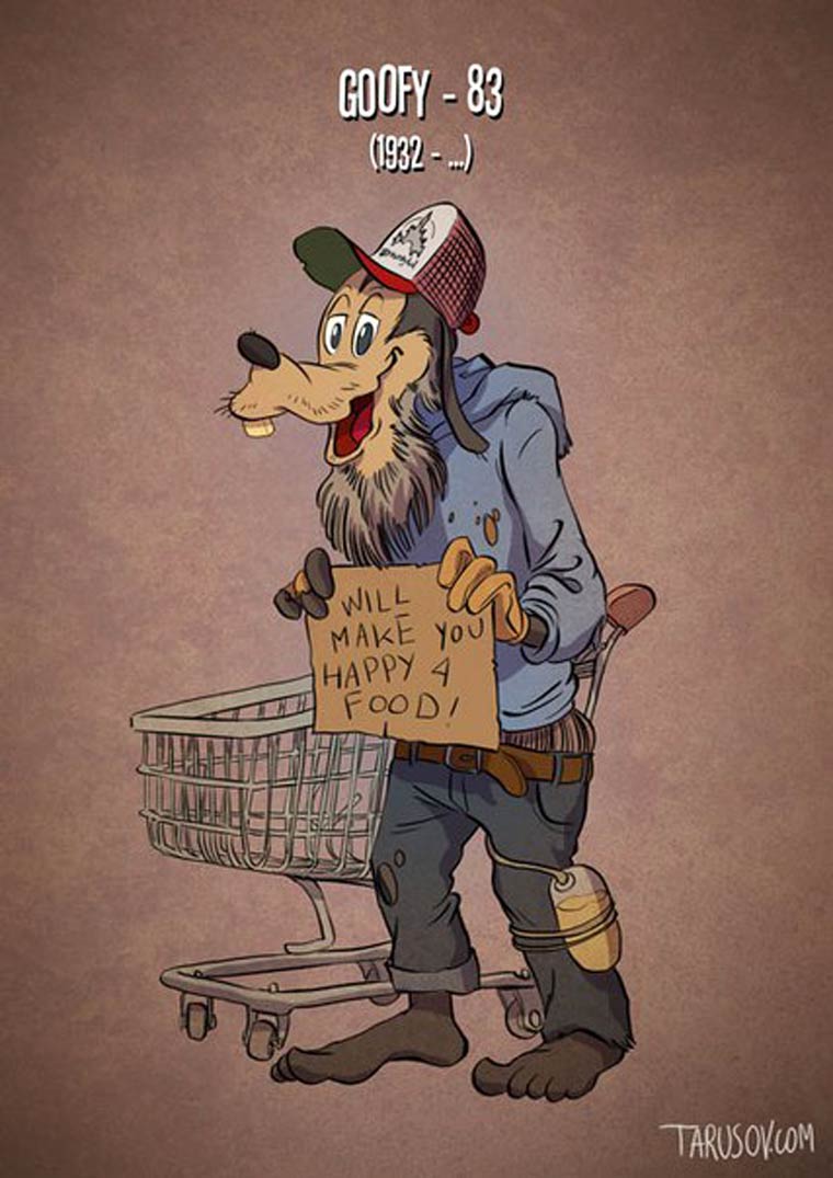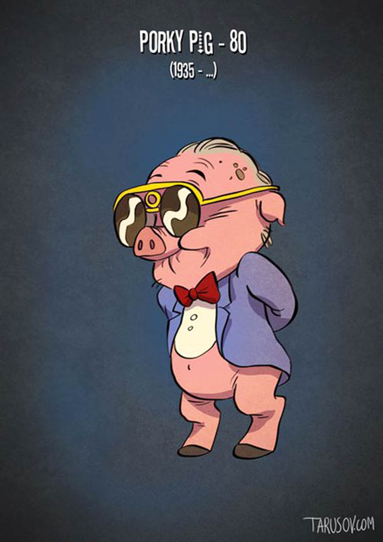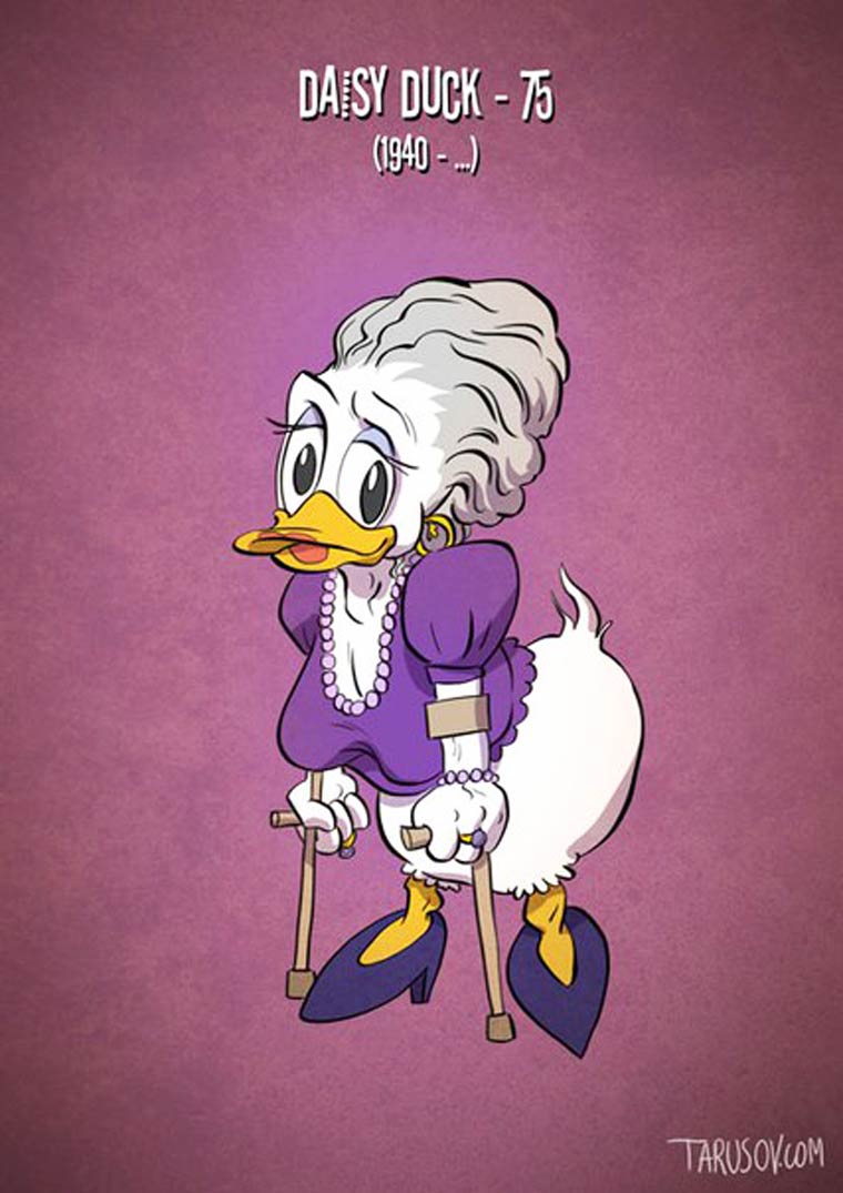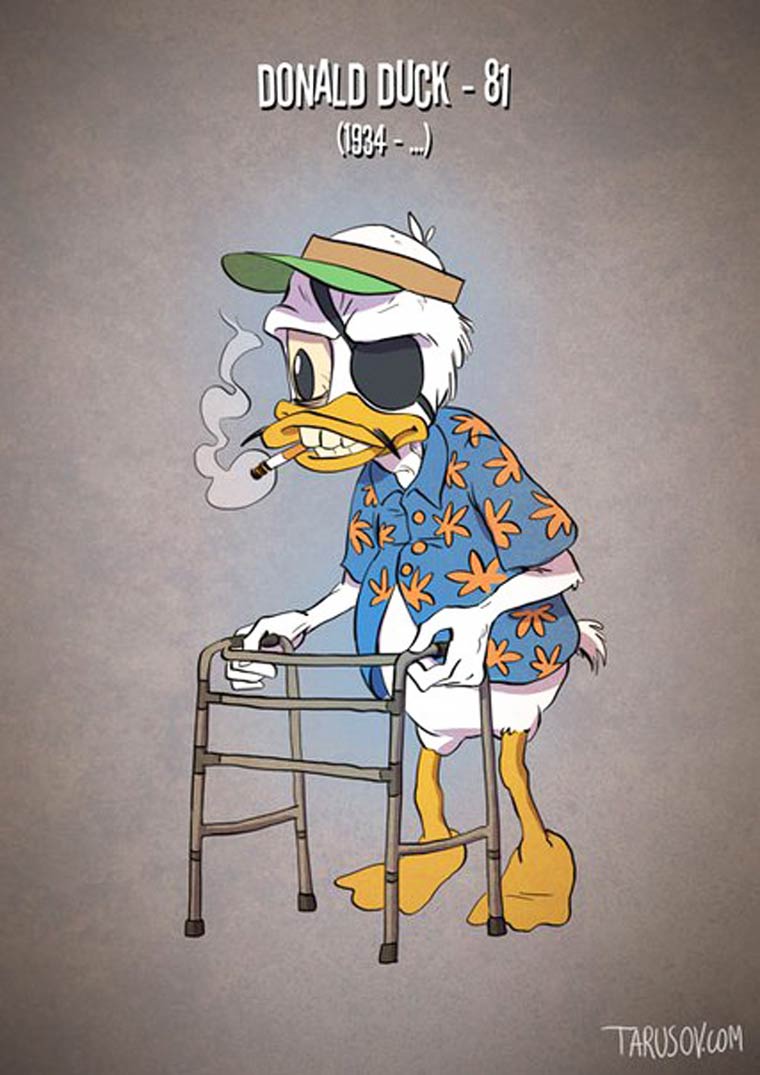 Si les personnages de cartoon vieillissaient comme de vrais acteurs, une excellente série de l’illustrateur russe Andrew Tarusov, basé à Los Angeles, qui s’amuse à donner à Mickey, Donald, Bugs