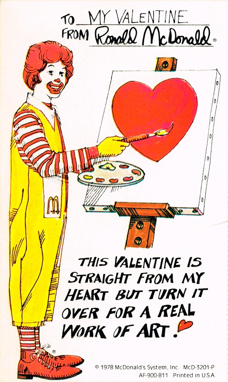 Source : Quand McDonald’s éditait des cartes pour la Saint-Valentin en 1978 | Ufunk.net
