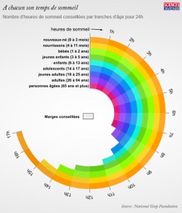 Rien ne vaut une bonne nuit de sommeil pour se sentir en pleine forme. Dormir oui, mais combien de temps ? La National Sleep Foundation américaine a publié en 2015 ses recommandations. Un panel de 18 spécialistes a en effet passé en revue plus de 300 publications scientifiques et en a déduit que les besoins en sommeil variaient énormément au cours de la vie et pouvaient être scindés en neuf catégories d’âge. Sciences et Avenir vous propose son infographie pour y voir plus clair :